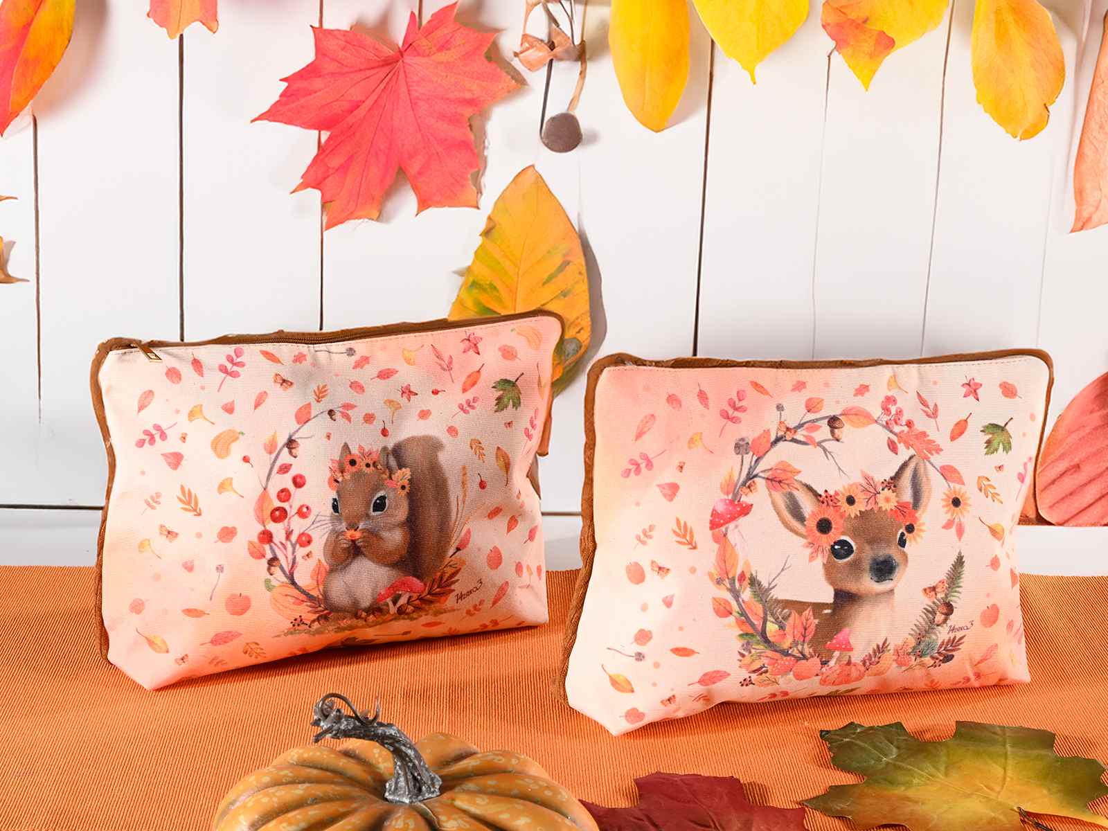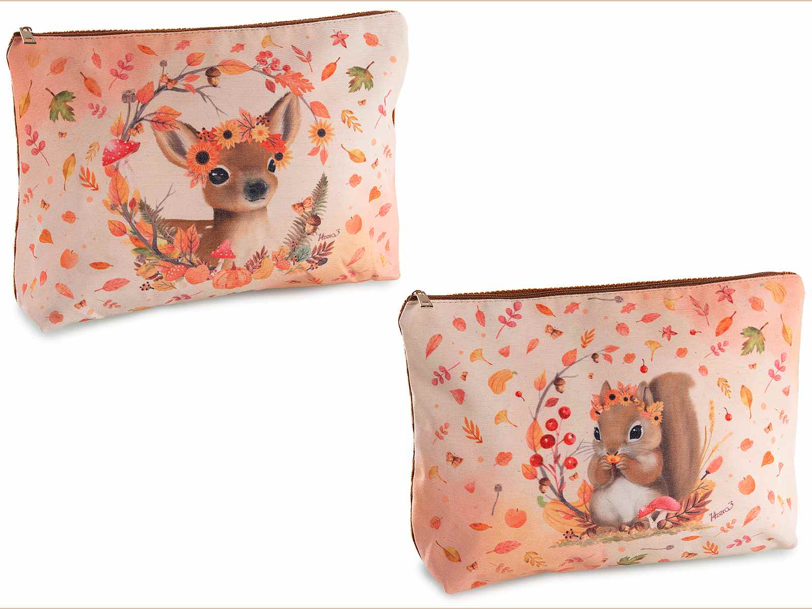 Autumnal pencil case in soft fabric with zip closure