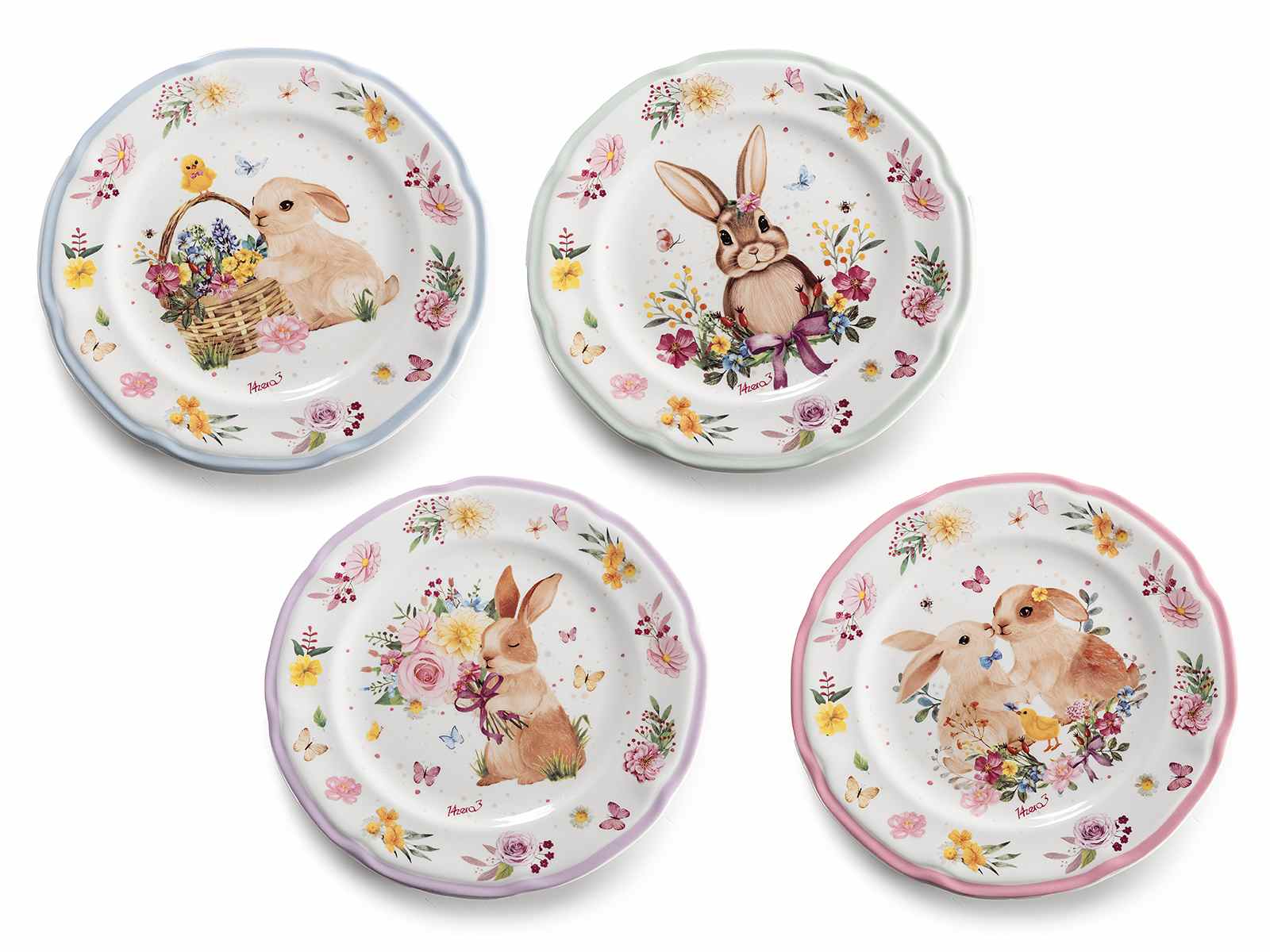 Set of 3 round glass plates decorated with bunny prints
