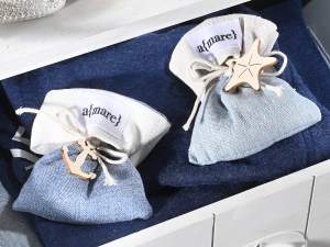Scented sachets for wardrobes and drawers made of 100% cotton with decorative label and wooden starfish / anchor tag cm 10 x 11 H. Granuli al profumo Ocean - Con zip sul retro
