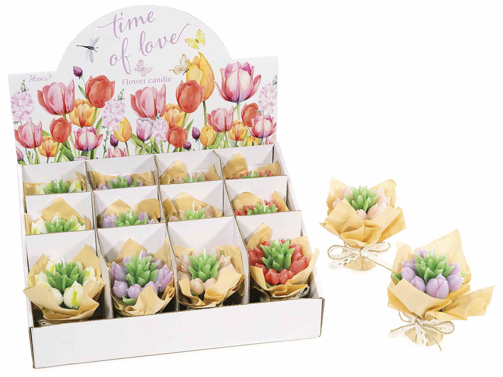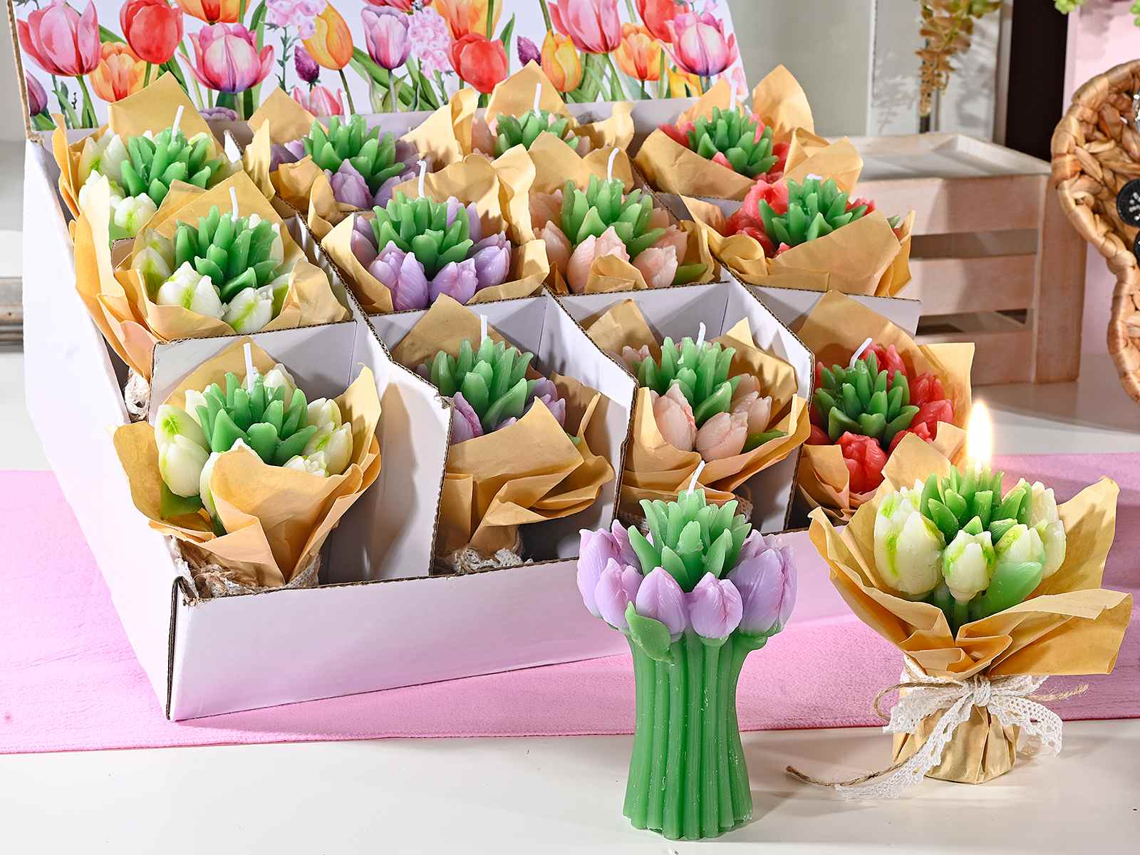 Tulip Bouquet Candles with Gift Wrap and Ribbon in Display 12pcs