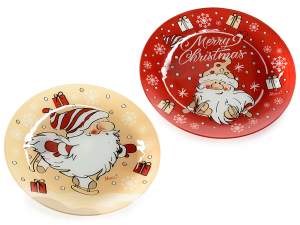 Round Christmas glass plates with gnomes decoration, suitable for direct contact with food Ø 30 cm.