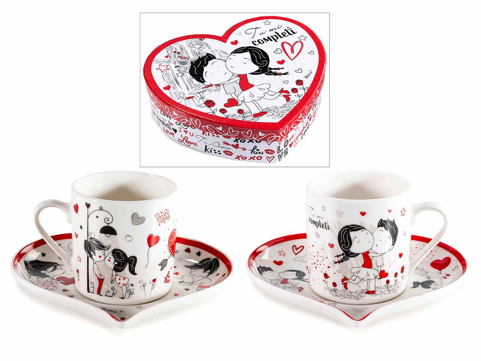 Heart-shaped set with 2 80 ml cups and porcelain saucers