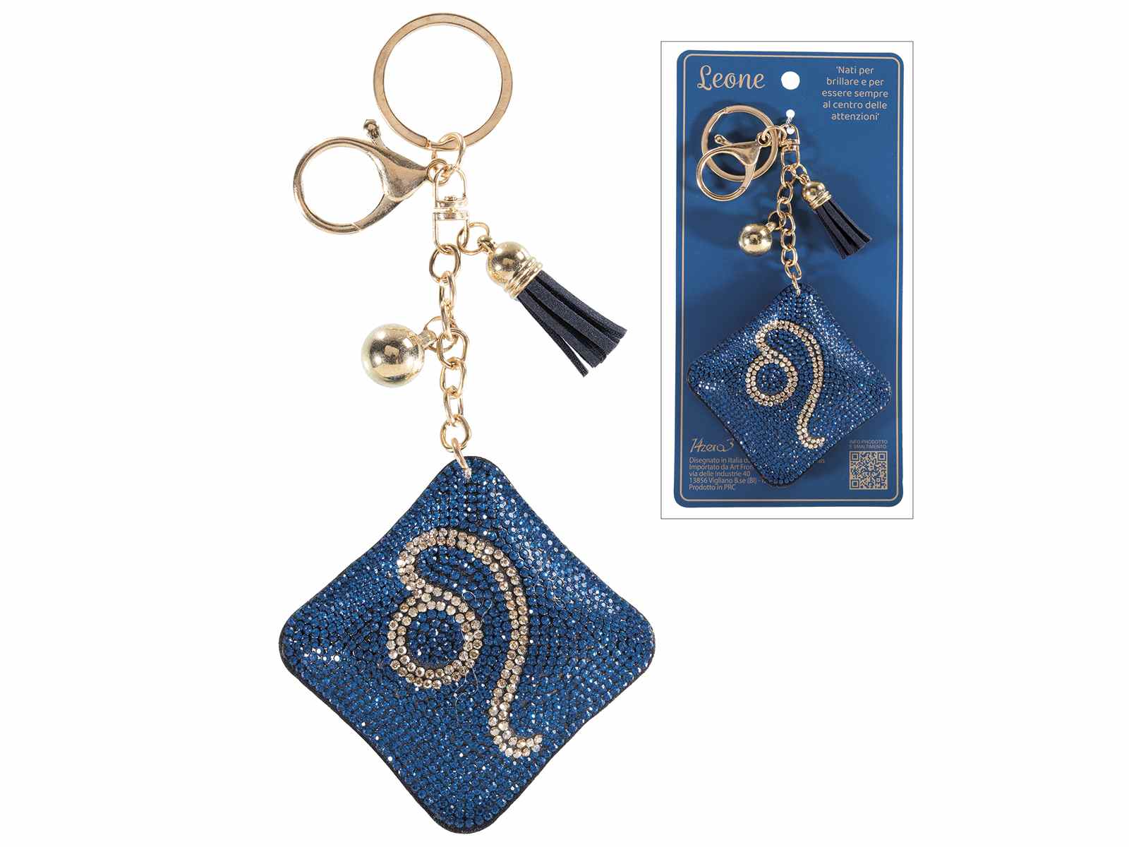 Charm keychain constellation Leo zodiac sign with rhinestones and pendants in card with matching writing