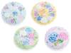 Colorful ceramic trivet with cork base and hydrangea decorations