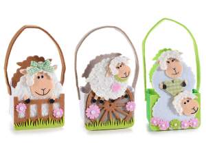 Easter bags in colored cloth with sheep cm9x7x14H (c/manico 20). Spazio riempibile: 8 x 5,5 x 6 H