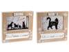Wooden photo frame with dog and cat decorations and rotating decorative writing