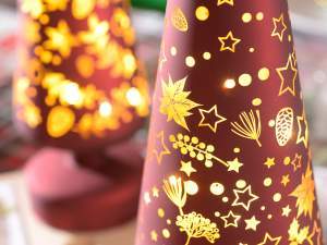 Decorated Glass Cylinder Lamps with LED Lights in a Set of 3 Grande: Ø 10 cm x 20 H. Media: Ø 9 x 16 H - Piccola: Ø 9 x 12 H - Ognuna funziona con 3 pile stilo non incluse - Design a 360°