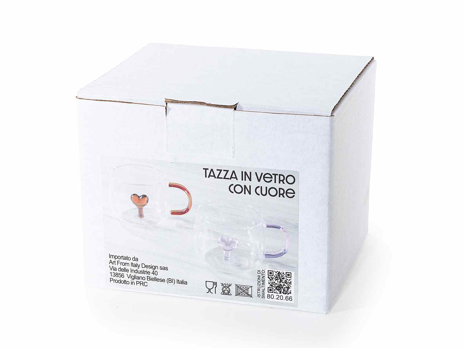 Clear Glass Mugs with 3D Heart Inside and Colorful Handle, with Single Box, Perfect for Valentine's Day / Mother's Day