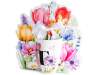 Porcelain mugs with floral print and initial letter T in a shaped gift box with bow