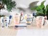 350ml porcelain mugs with Mother's and Father's Day print and integrated colored spoon