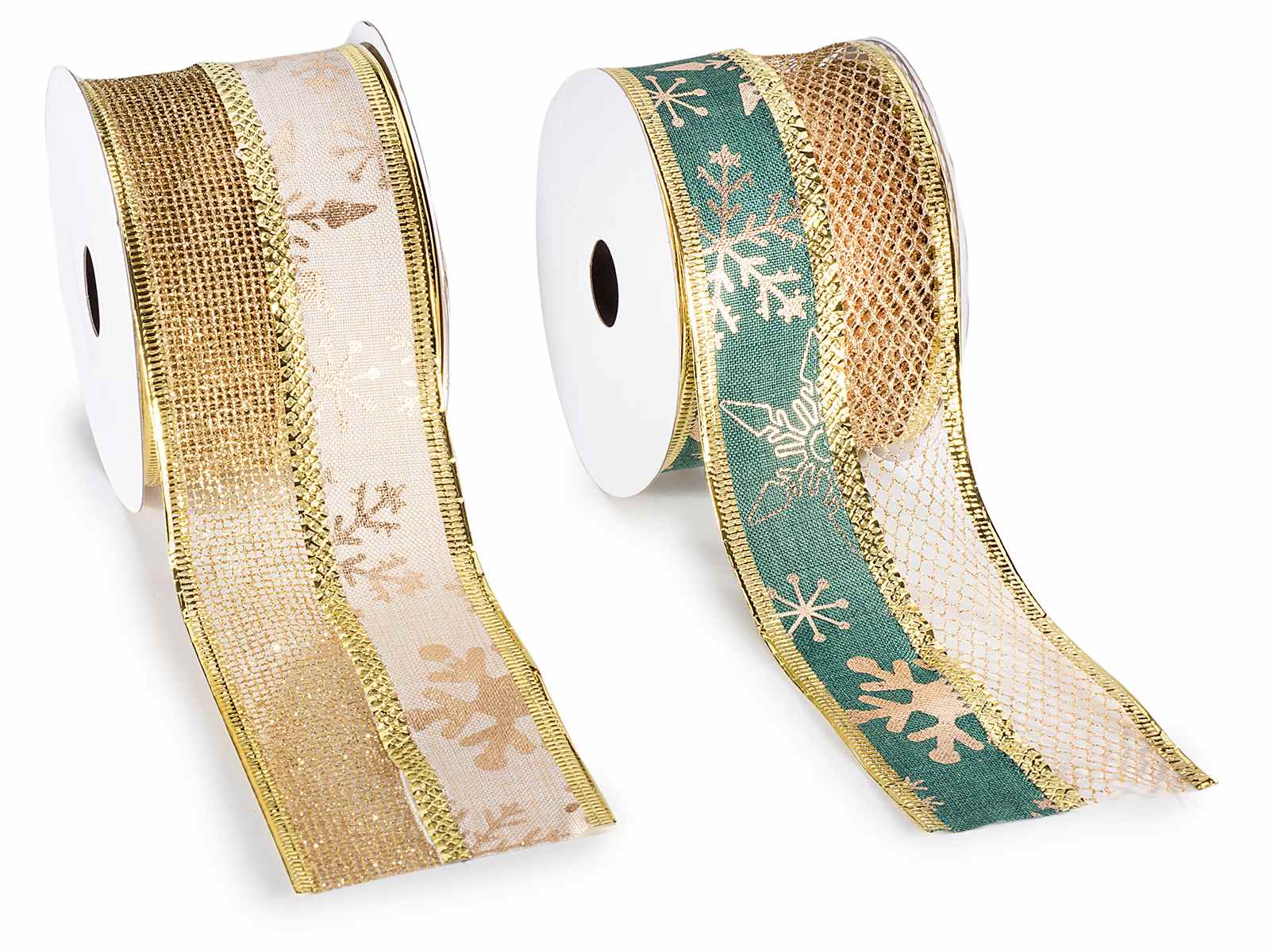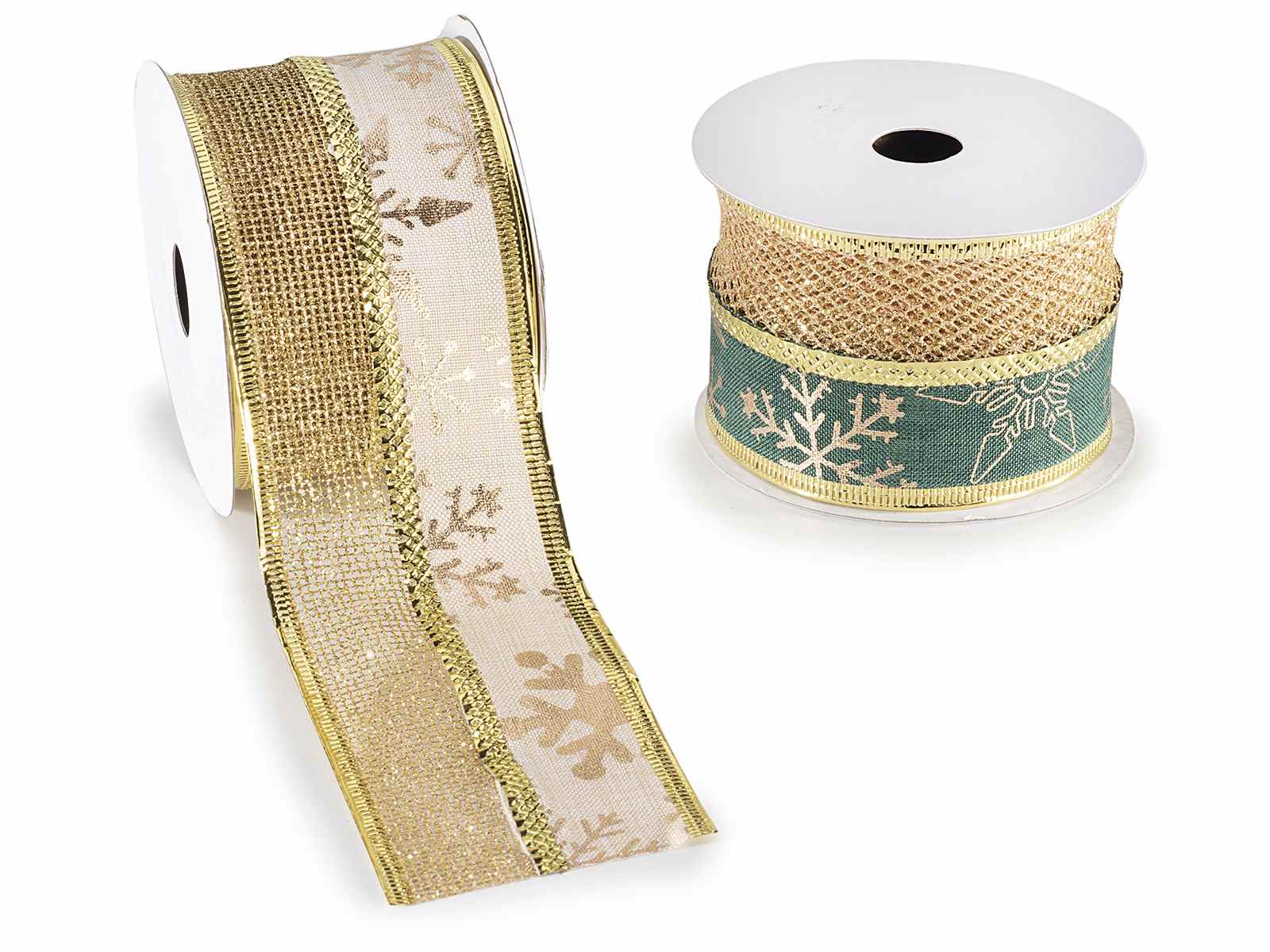 Double weft modelling Christmas ribbons with gold mesh and snowflake decoration