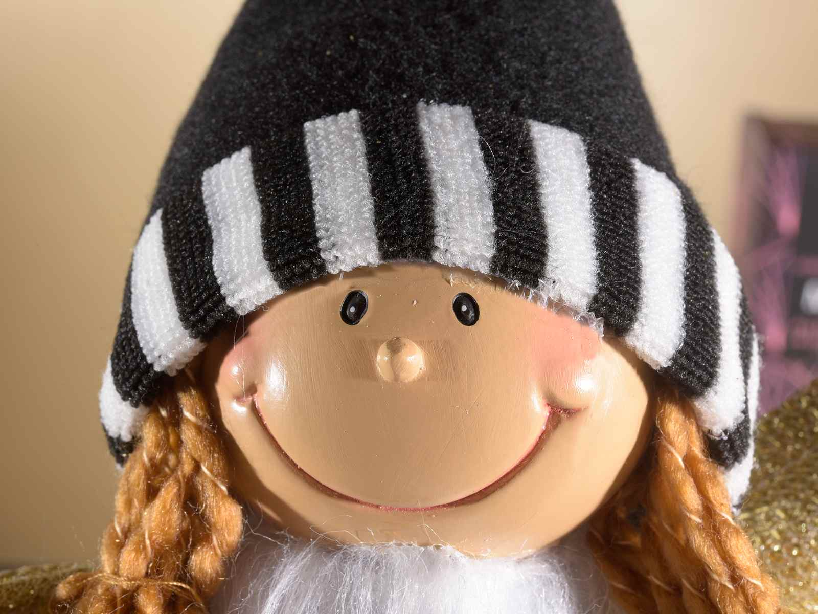 Angel with eco-fur dress with golden threads and sequin