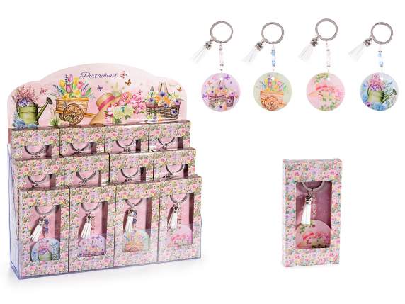 Resin floral keychain with tassel in gift box in a 12-piece display