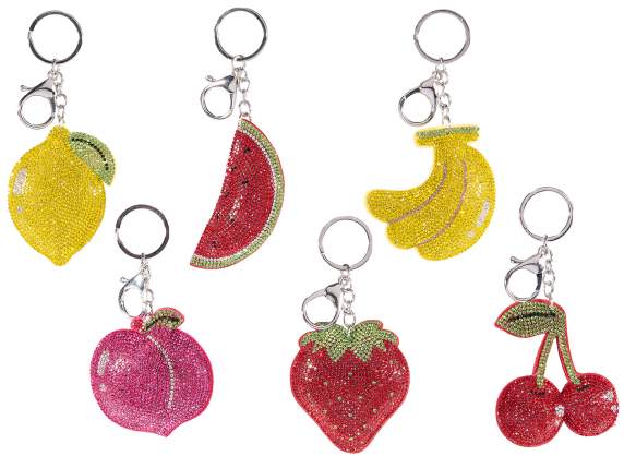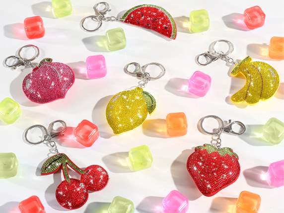 Summer Fruit Shape Keychain Charm / Watermelon Lemon Peach Cherry Strawberry Banana with Rhinestone