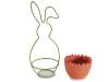 Easter egg vase in colored concrete with green metal handle in the shape of a rabbit and removable container