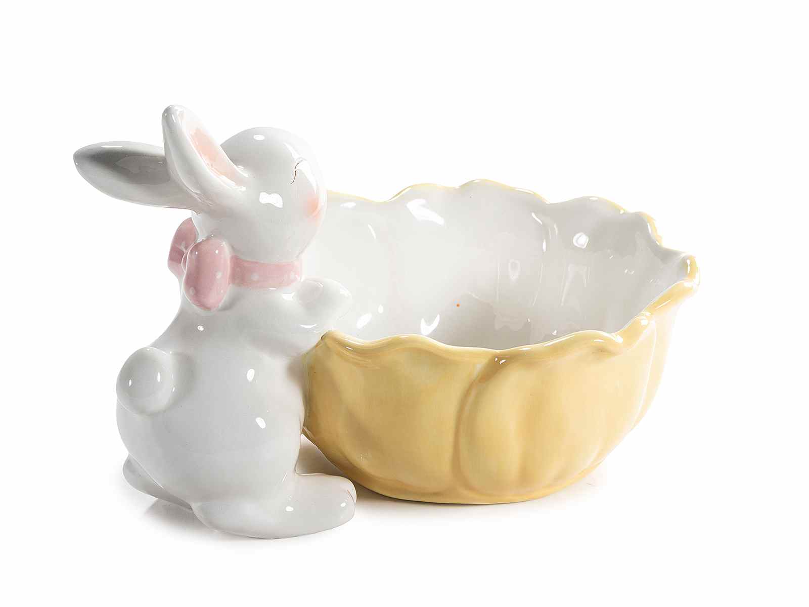 Colorful ceramic flower-shaped fruit bowl/basket containers with rabbit on the side