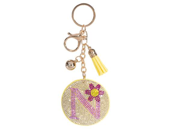 Colorful alphabet letter N charm / keychain with rhinestones, flower, tassel and pendant