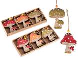Decorative autumnal hanging ceramic mushrooms in colorful colors