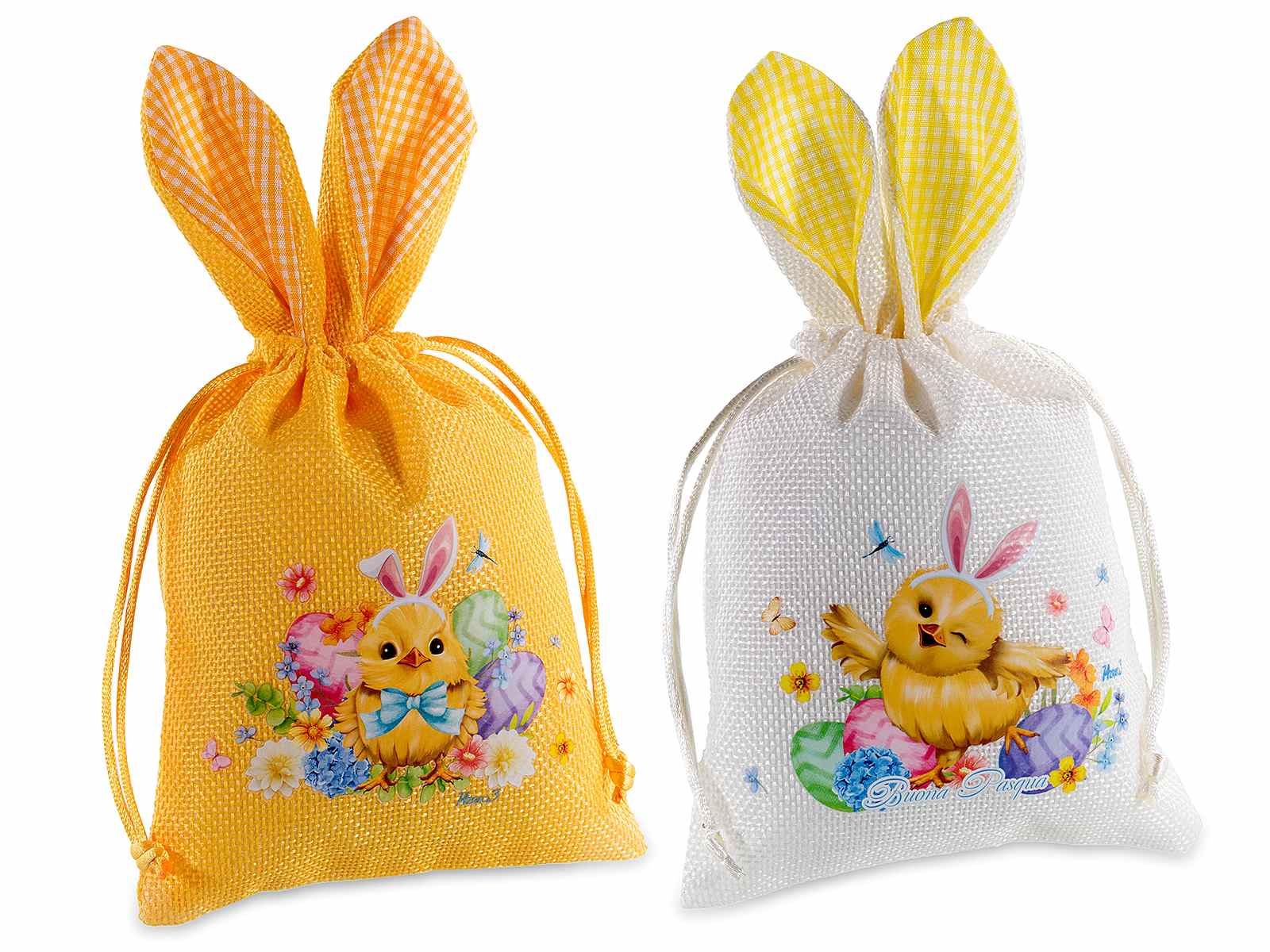 Easter Cotton Candy Bags with Bunny Ears, Pull and Chick Print