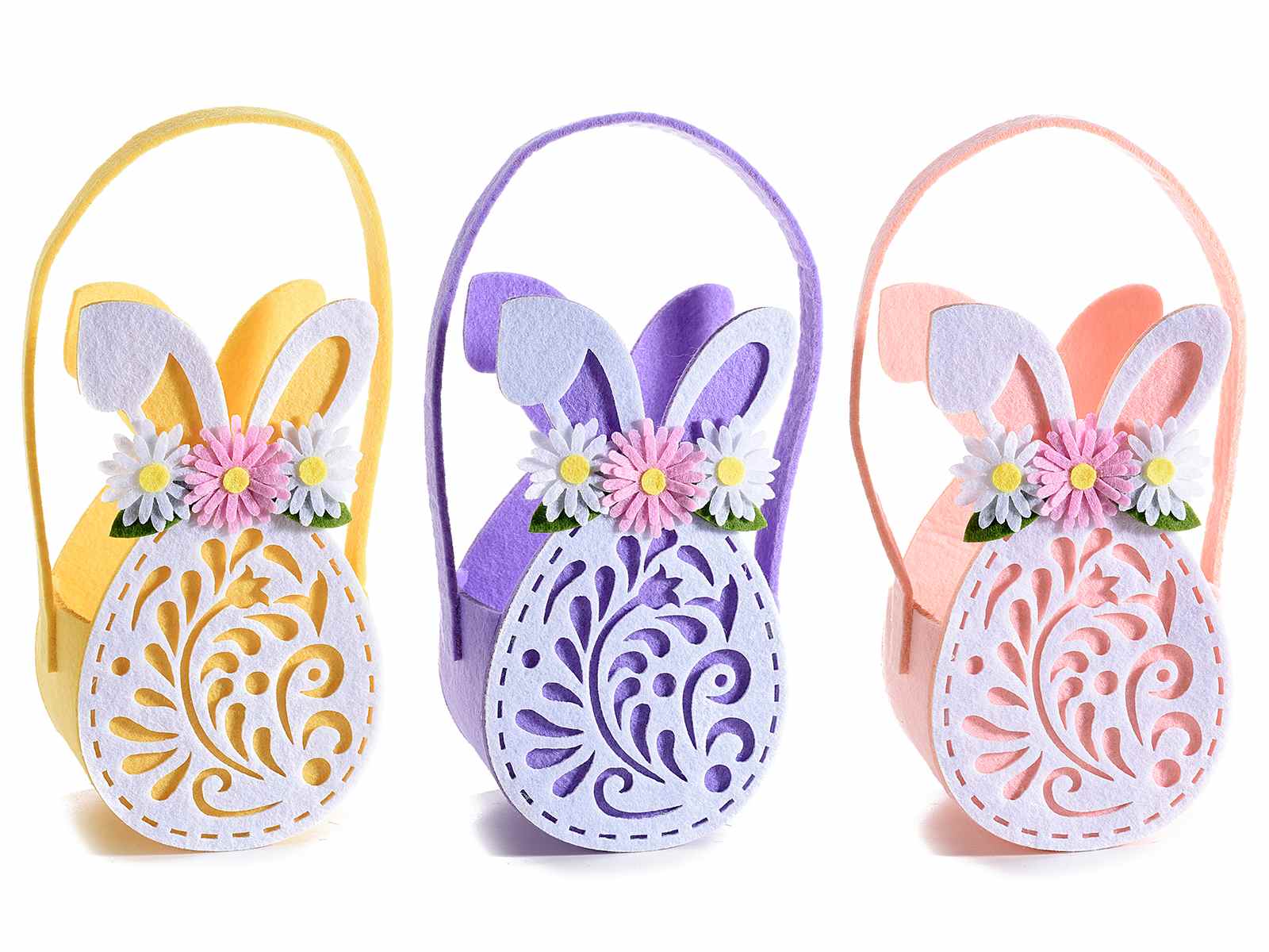 Easter bunny bags in colored cloth decorated with rabbit ears