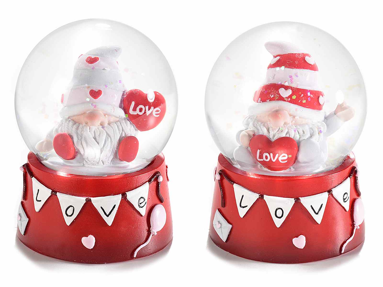 Glitter snow globes, made of glass with gnomes in love and a resin base, also suitable for Valentine's Day