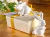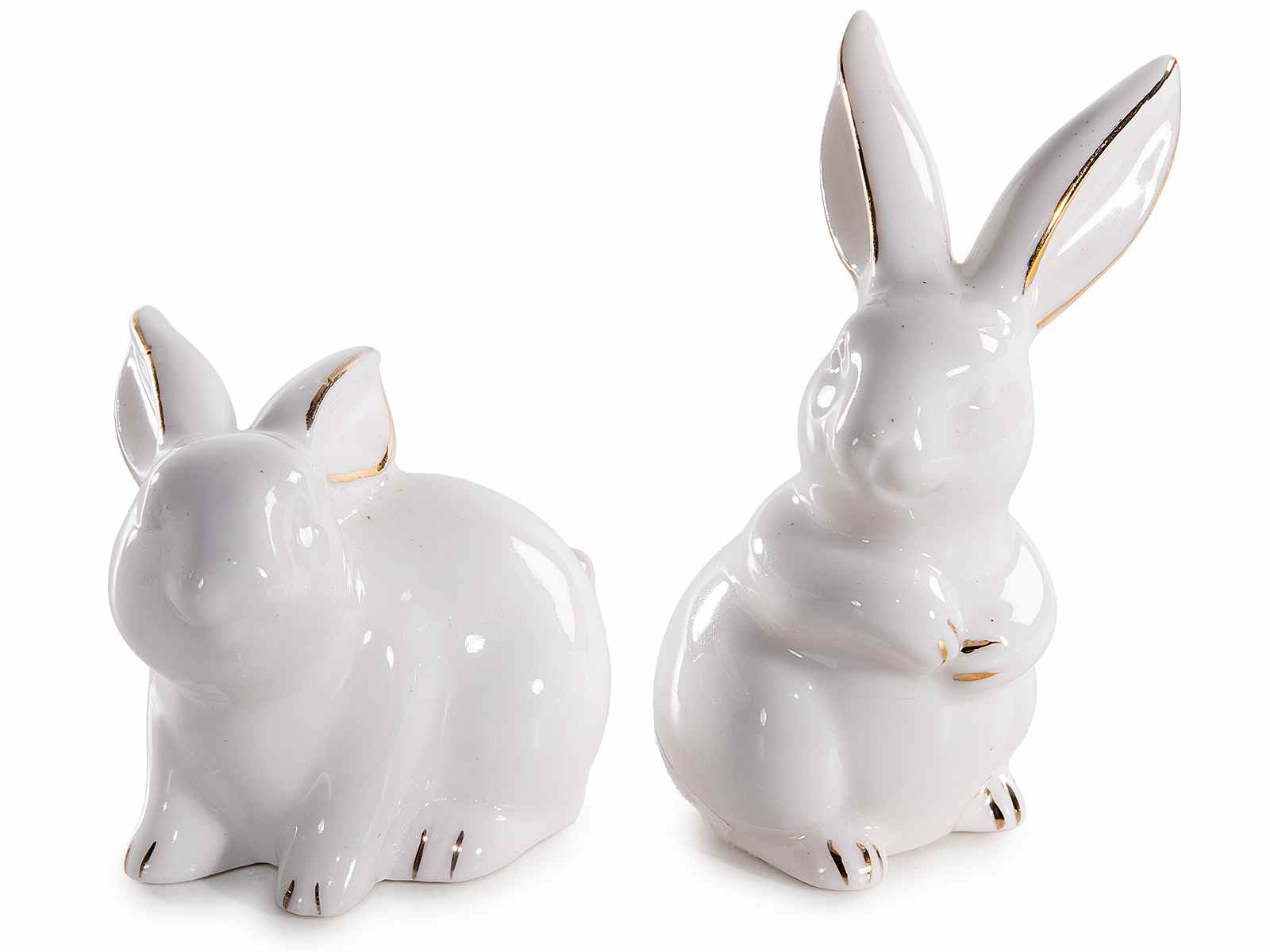 Easter bunnies in white glossy porcelain with shiny gold-like details on ears and paws