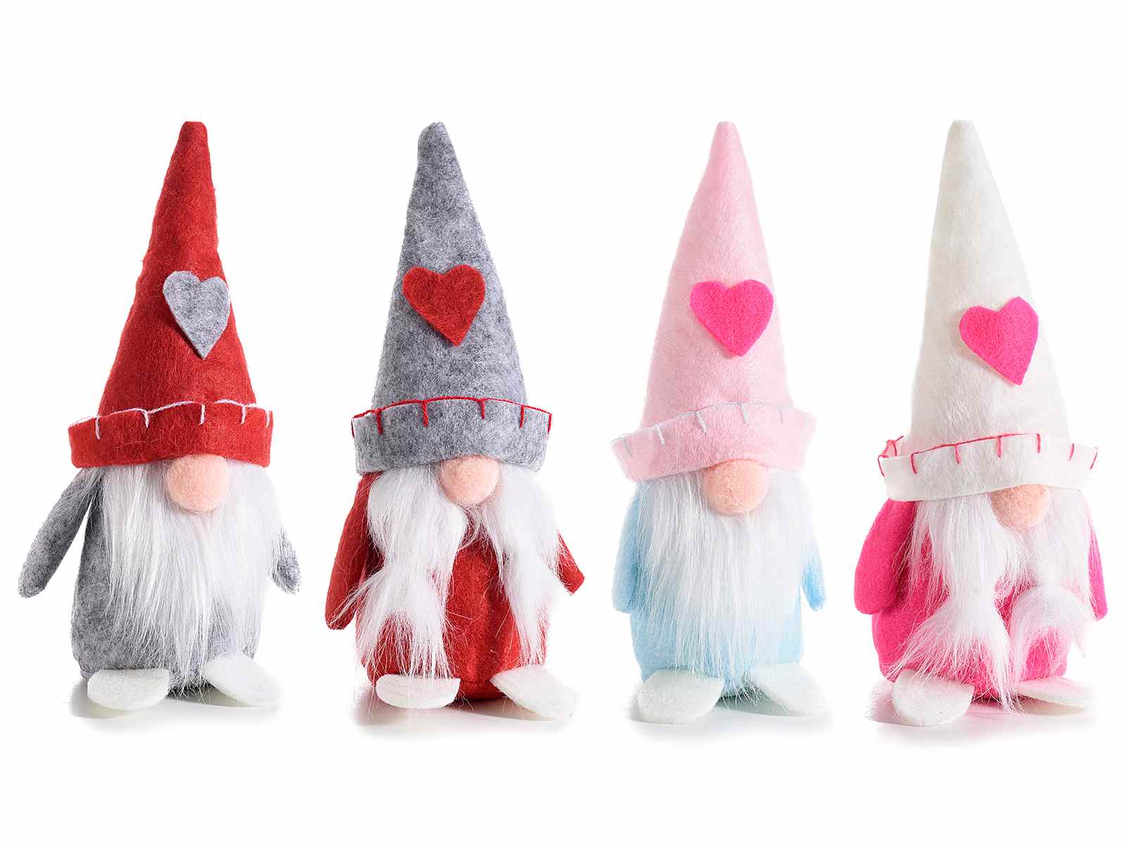 Cloth gnomes in love with zipper, sweets holder and hats with decorative heart