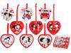 Decorative ceramic hearts with a love print and a hanging string. Displayed in a 36-piece set.