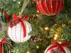 Glass Christmas baubles with berry, glitter, and bow decorations to hang in a display.