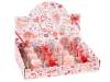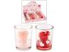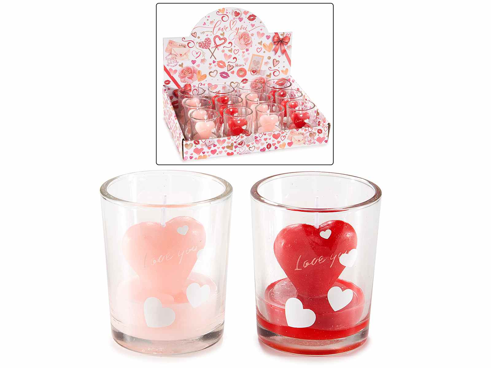 Heart-shaped candles with the words "Love You" in a glass jar in a 12-piece display, ideal as a Valentine's Day gift.