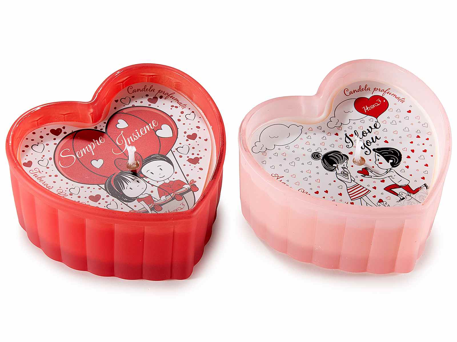 Scented candles in a heart-shaped glass jar, with a lover's design, ideal for Valentine's Day