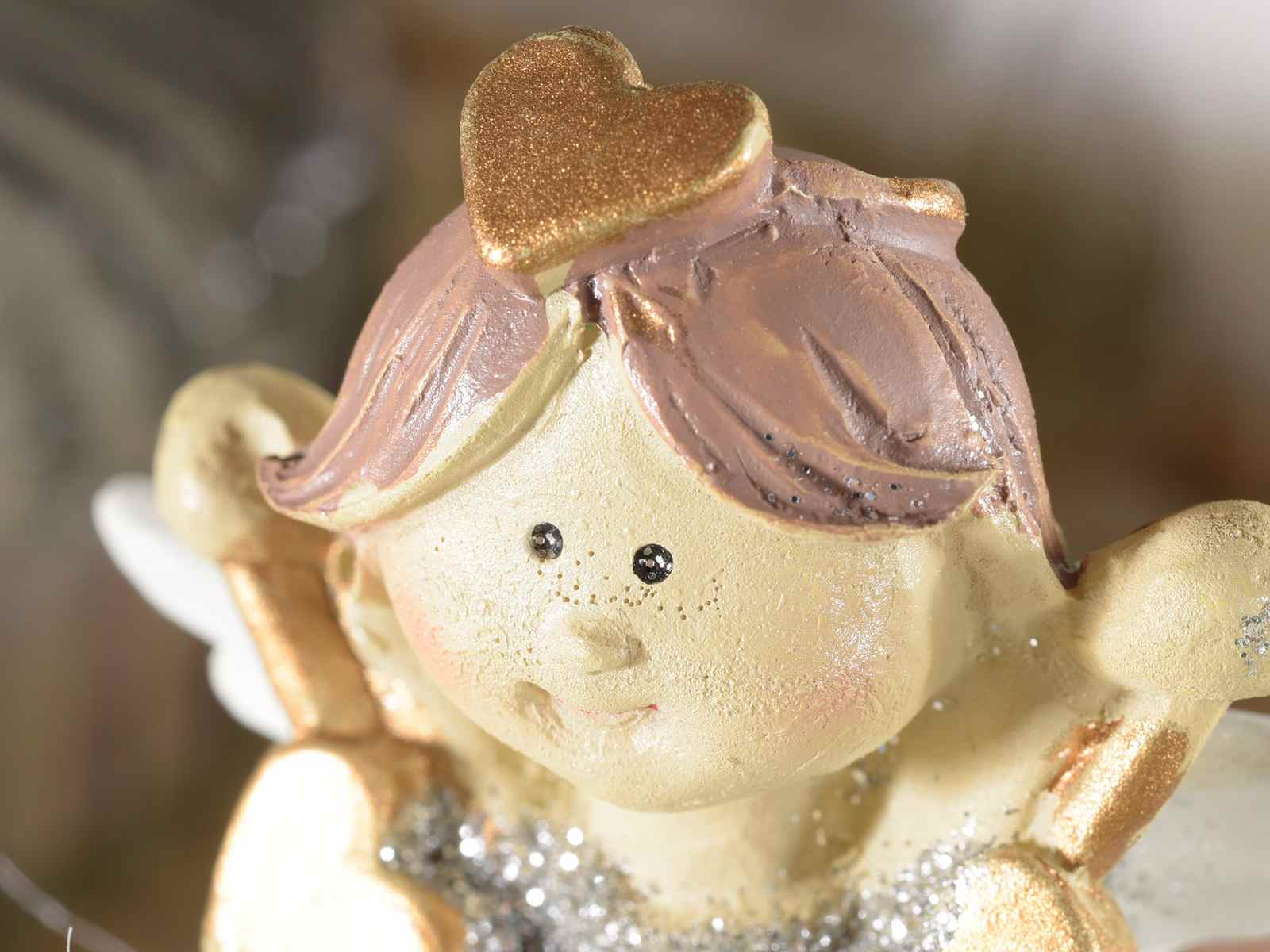 Resin angels to stand with eco-fur skirt and gold and glitter decorations