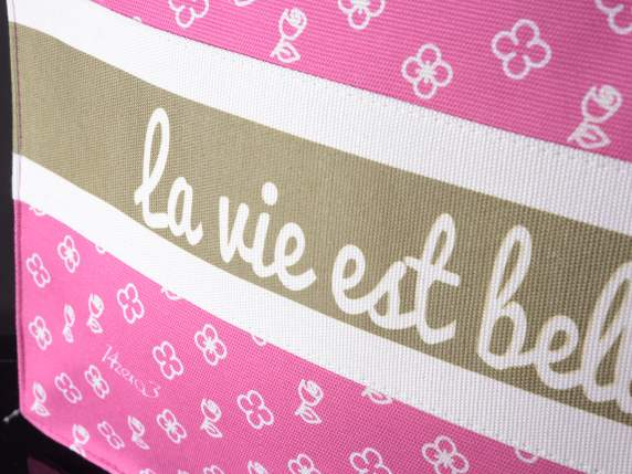 La vie est belle fuchsia fabric tote bag with handles, internal pocket and zip closure