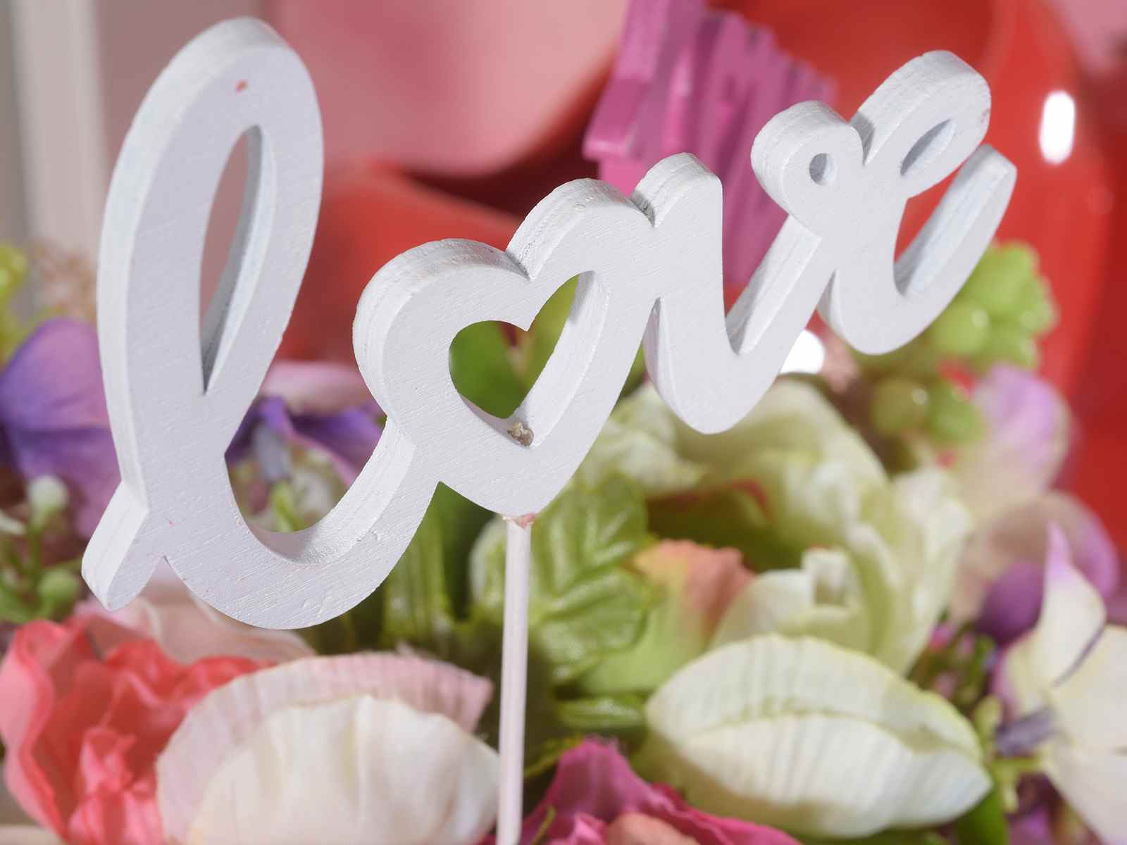 Wooden sticks with colored Love writing. Perfect for romantic decorations, gift wrapping, party favors and Valentine's Day themed arrangements and special events.