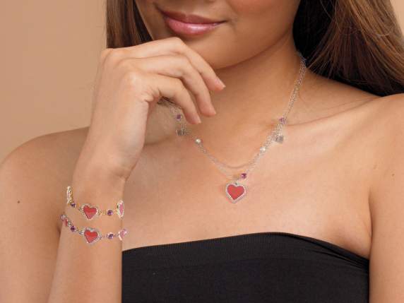 Metal bracelet with lacquered hearts and rhinestones with ca