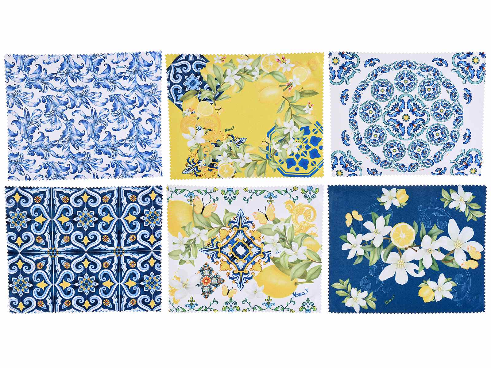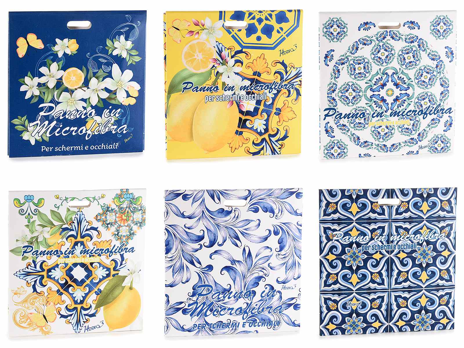 Microfiber cloths for cleaning screens / glasses with majolica print in a 36-piece display