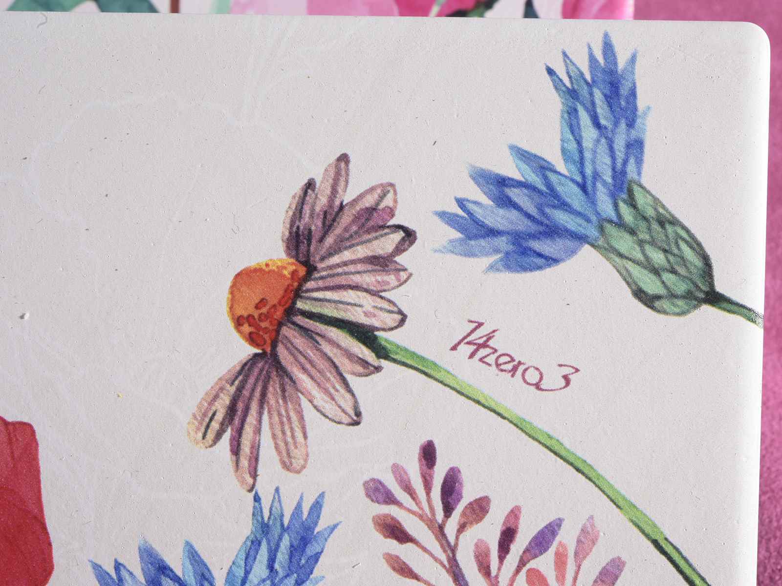 Under glasses with flower print in opaque ceramic and cork base in 4-piece packs