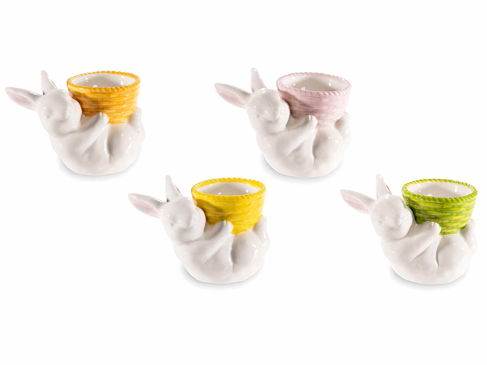 Porcelain Easter Bunny Egg Holders with Colorful Basket