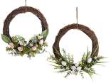 Easter garlands made of rattan with colored eggs and decorative twigs. Includes hanging cord.