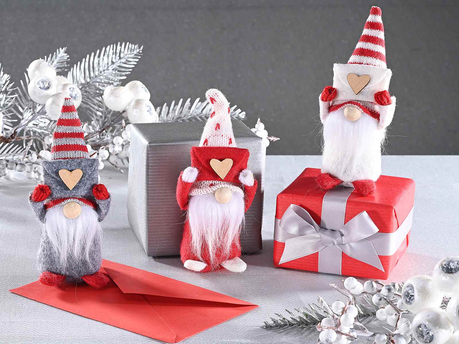 Santa Claus in cloth gnome with letter with heart, to be placed on a table