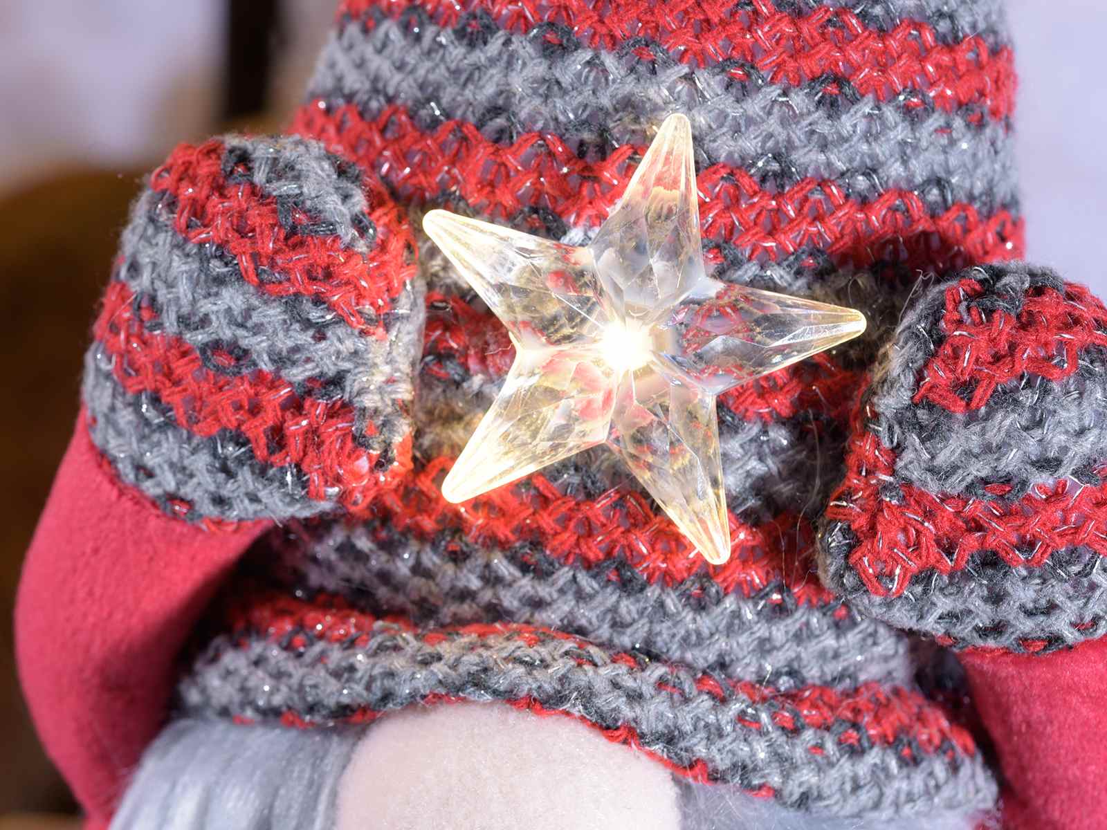 Santa Claus long legs in fabric with silver threads and LED light star