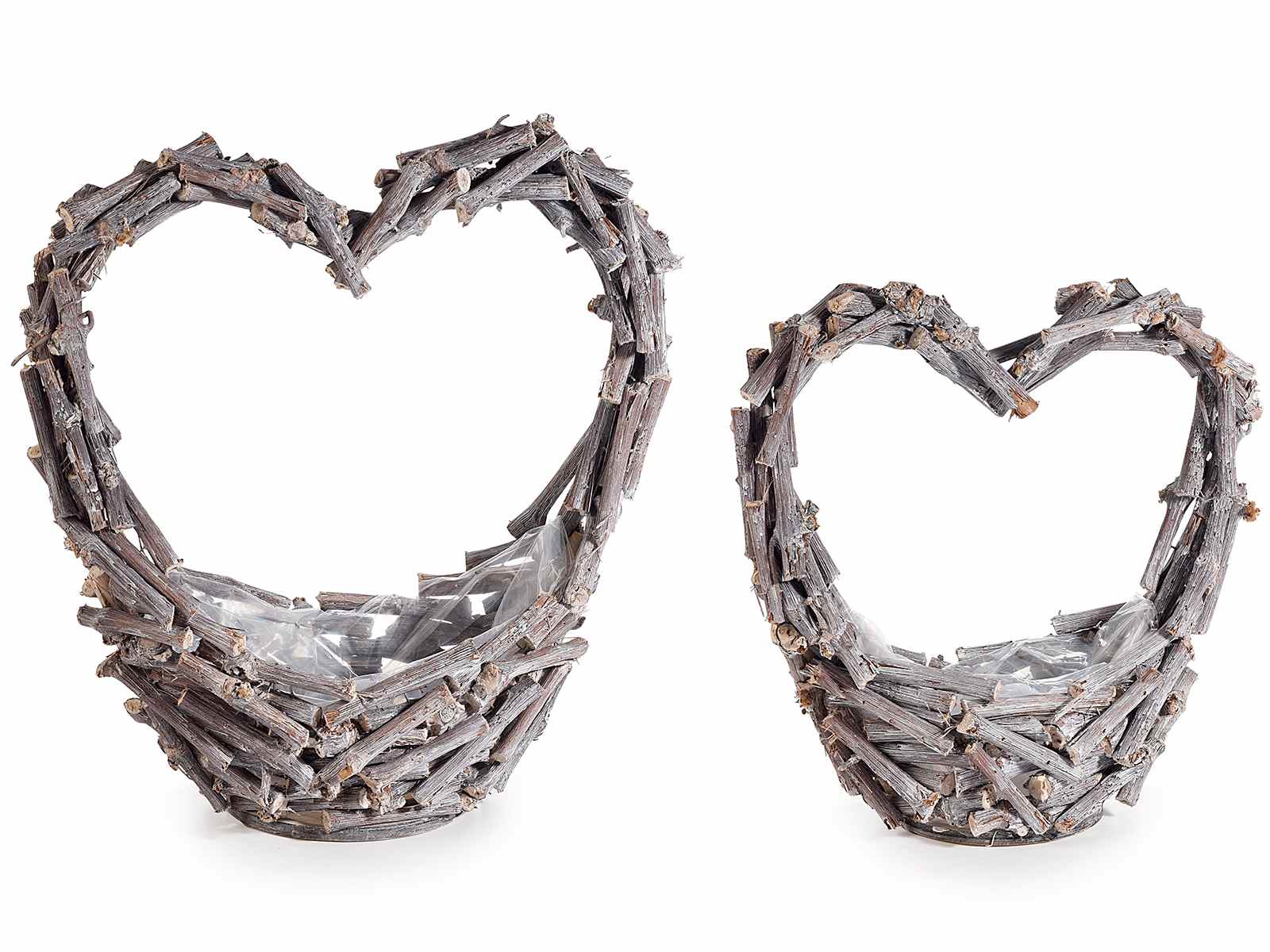 Set of 2 wooden flower baskets with heart-shaped handles for Valentine's Day and Mother's Day