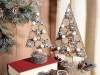 Set of 2 wooden trees with pompoms and decorative snowflakes