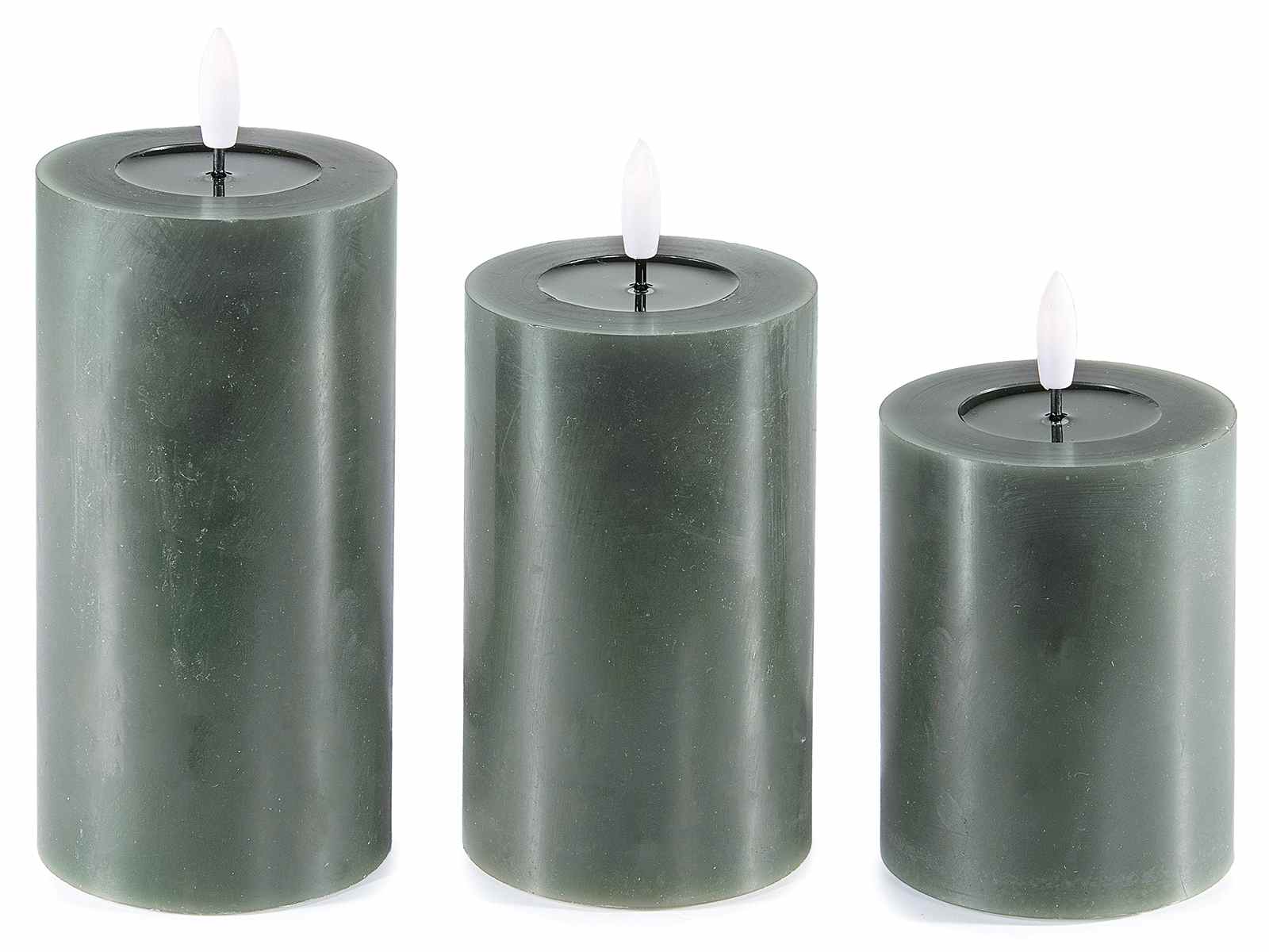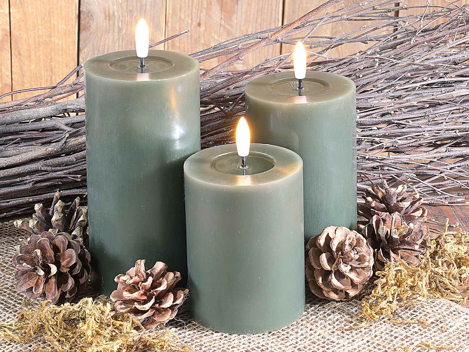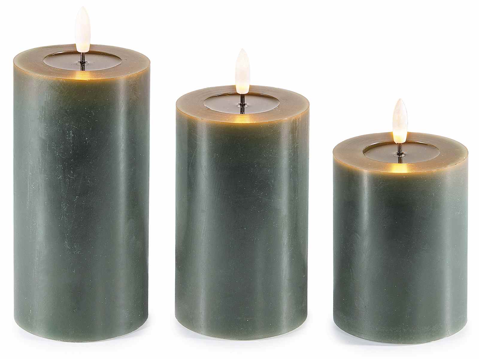 Electronic wax candles with fixed LED flame in set of 3, offer a realistic effect without smoke or melted wax