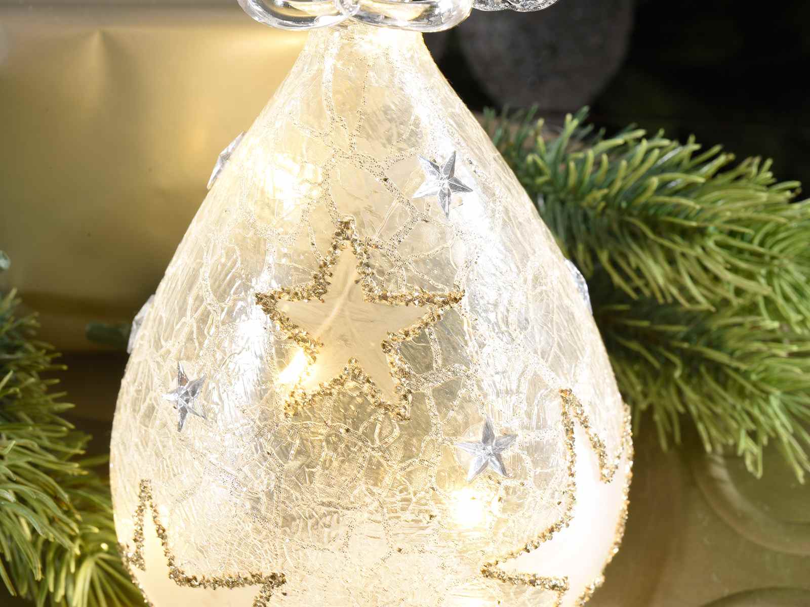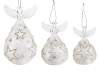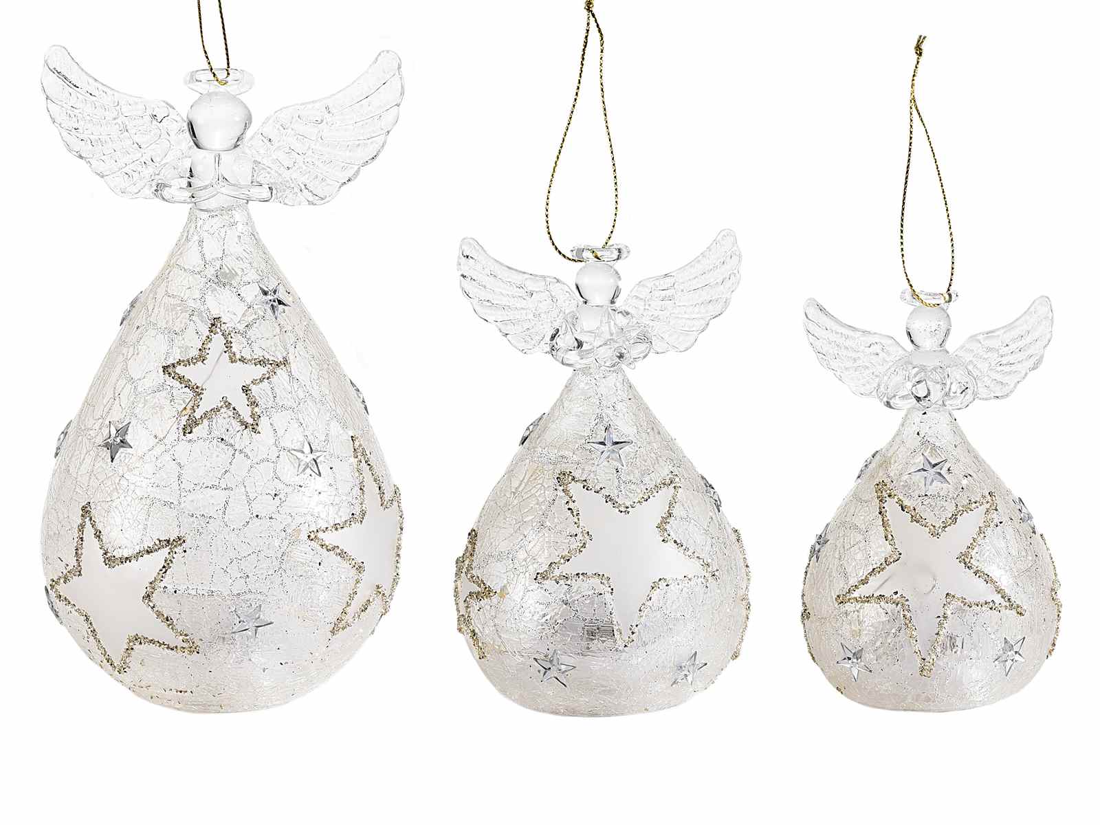 Decorated glass angels with LED light and glitter to stand/hang in a set of three pieces