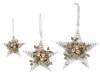 Set of 3 rattan stars with leaves and golden balls to hang