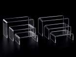 Lightweight and durable transparent benches, ideal for window displays and displays. Made of high-density acrylic, they ensure stability and a modern design. The different sizes nest inside each other, optimizing space.