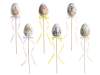 Decorative wooden Easter stick with glossy plastic egg with bunny print and colored ribbon