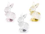 Soft eco-fur bunnies with raffia bow to hang on a table