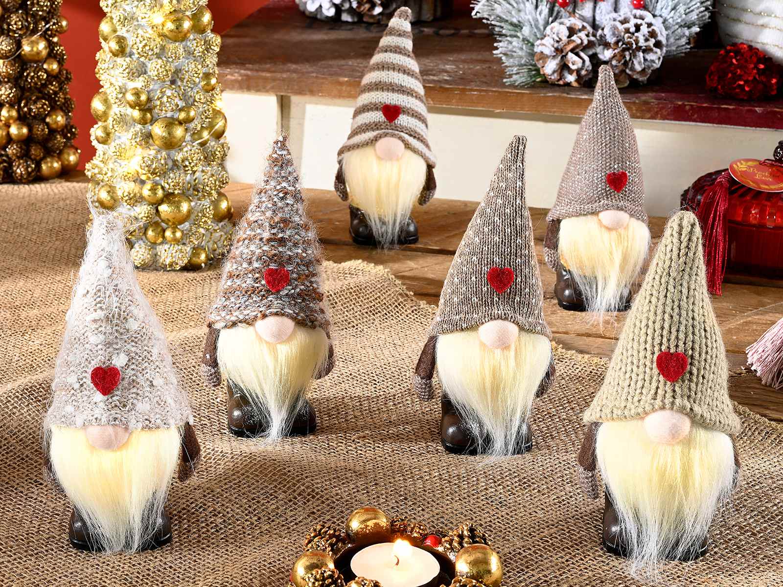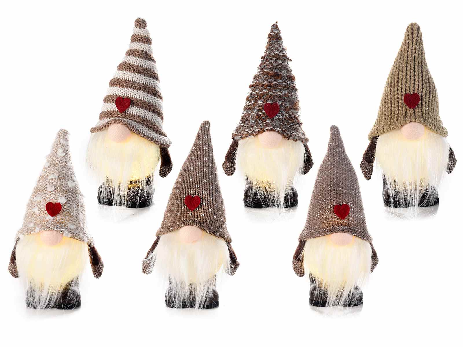 Decorative Santa Claus gnomes to stand with long beard, heart on hat and luminous body